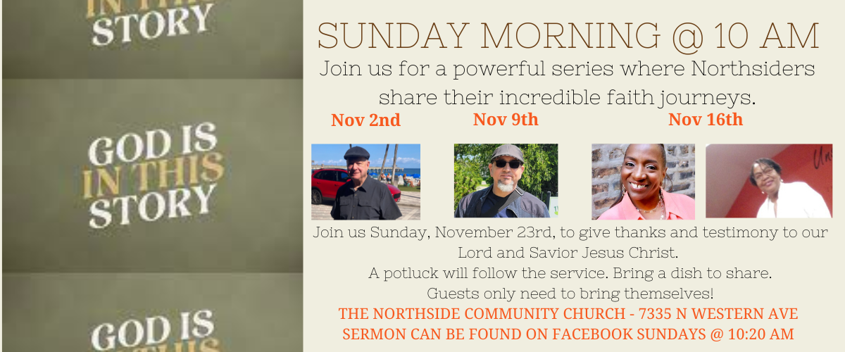 The sermon will be posted to The Northside Community Church Facebook Page by 12 pm each Sunday!